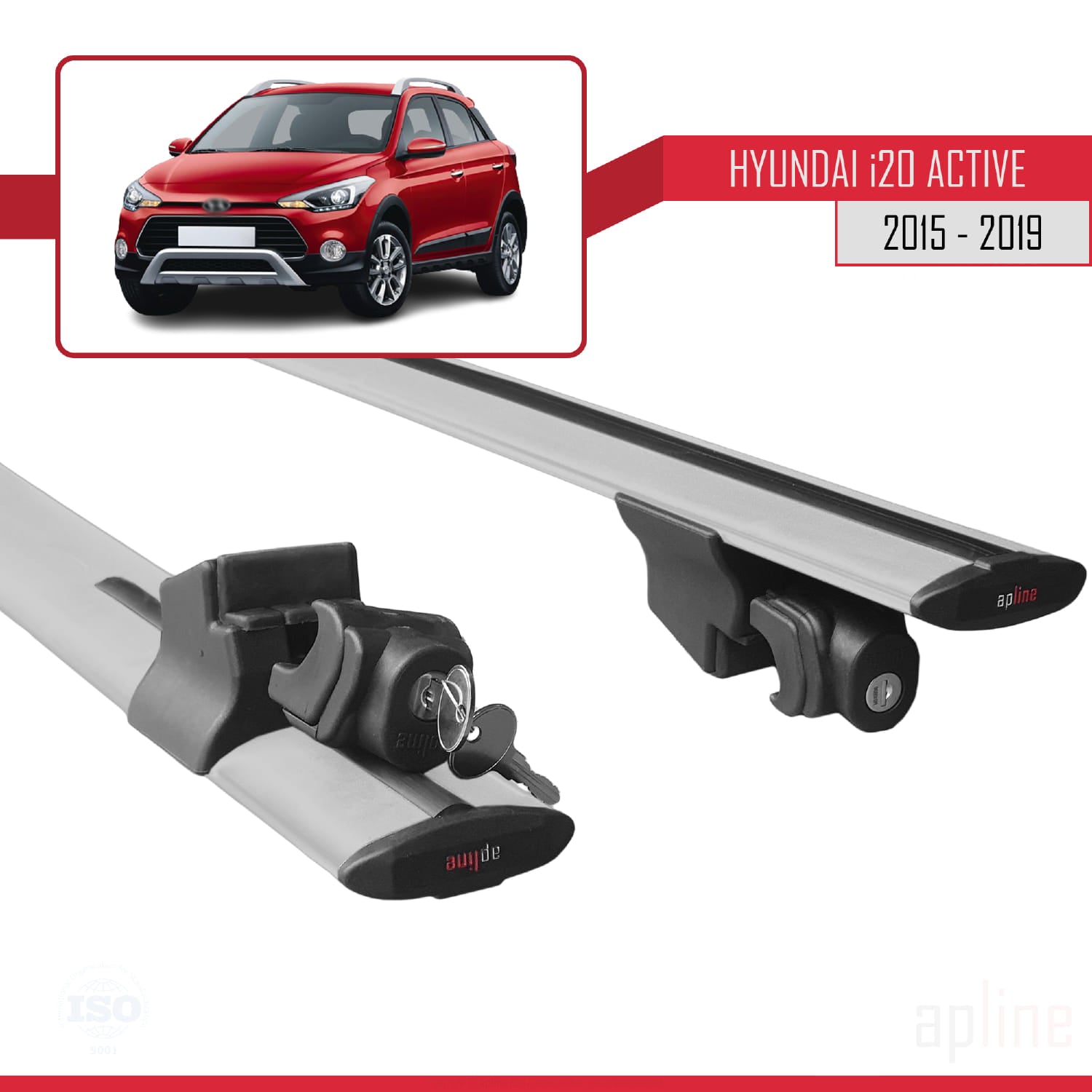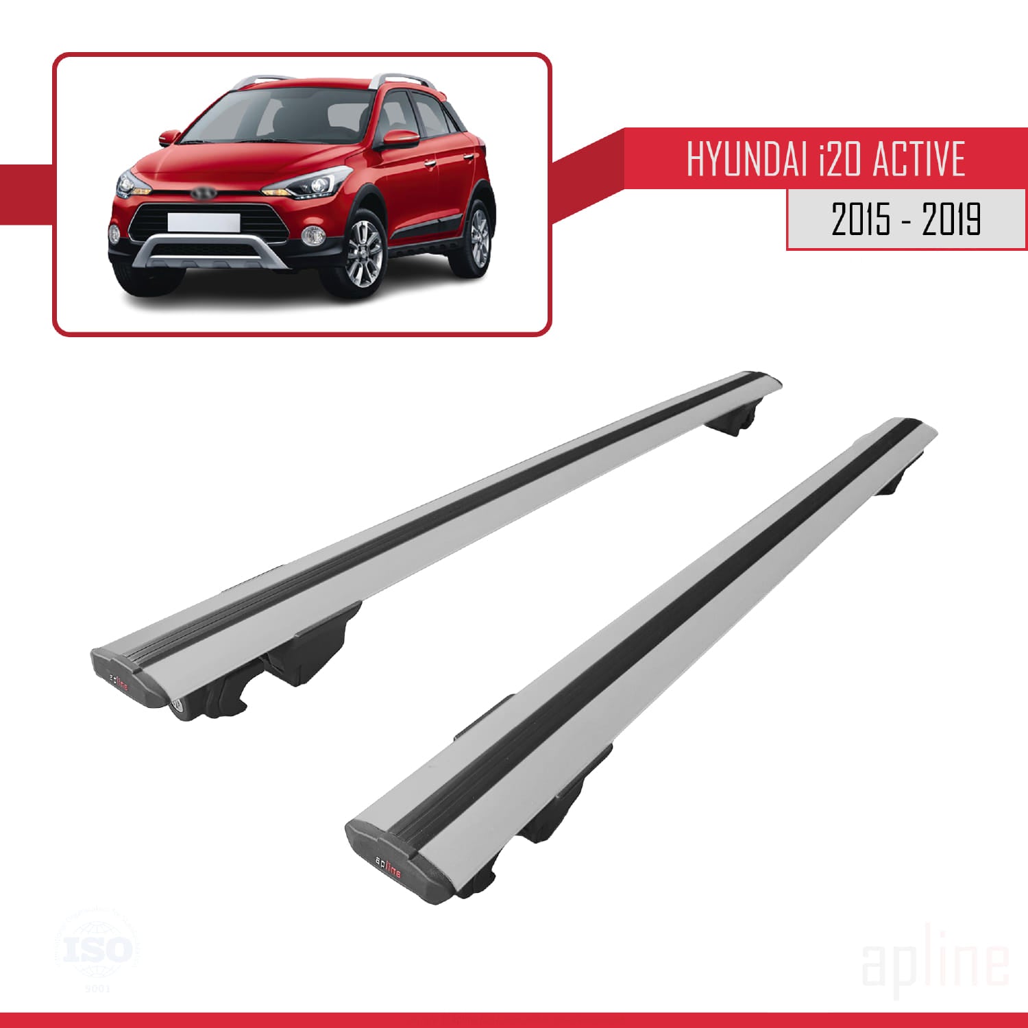 Compatibile con Hyundai i20 II Active 2015-2019 modello HOOK Barre portatutto per auto Portapacchi in alluminio grigio 2 barre