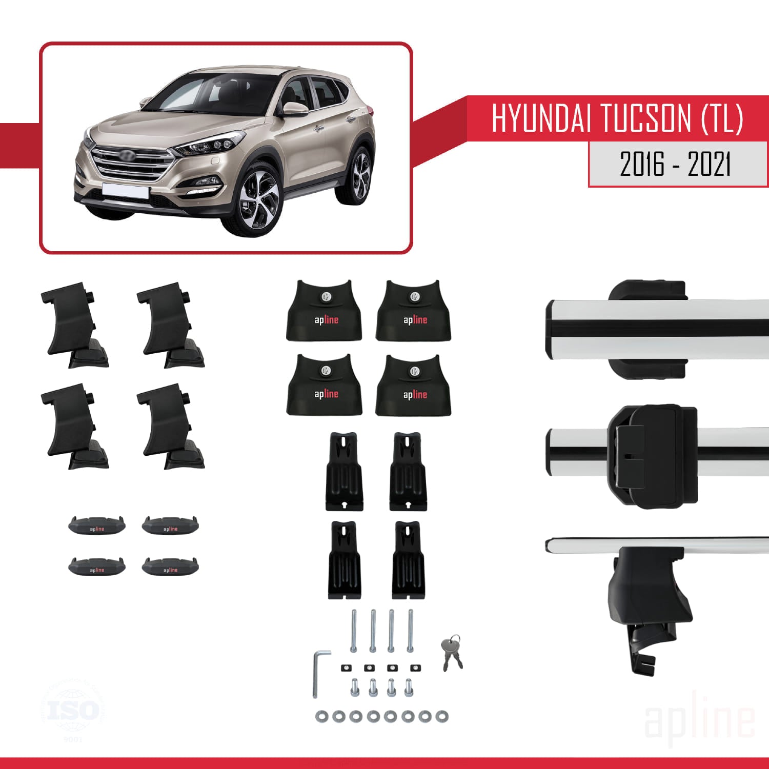 Compatibile con Hyundai Tucson 3 (TL) 2016-2021 ACE-4 Barre portatutto per auto Portapacchi in alluminio grigio 2 barre