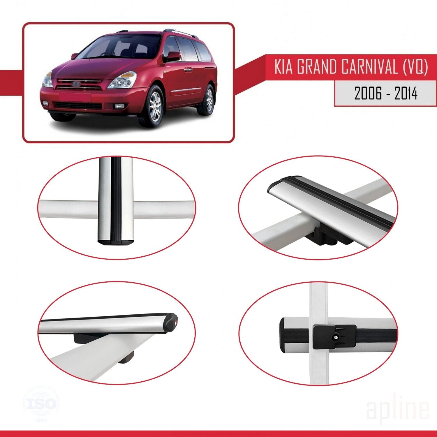 Compatible avec Kia Carnival 2 (VQ) 2006-2014 BASIC Model Barres de Toit Railing Porte-Bagages de Voiture Gris Aluminium 3 Barres