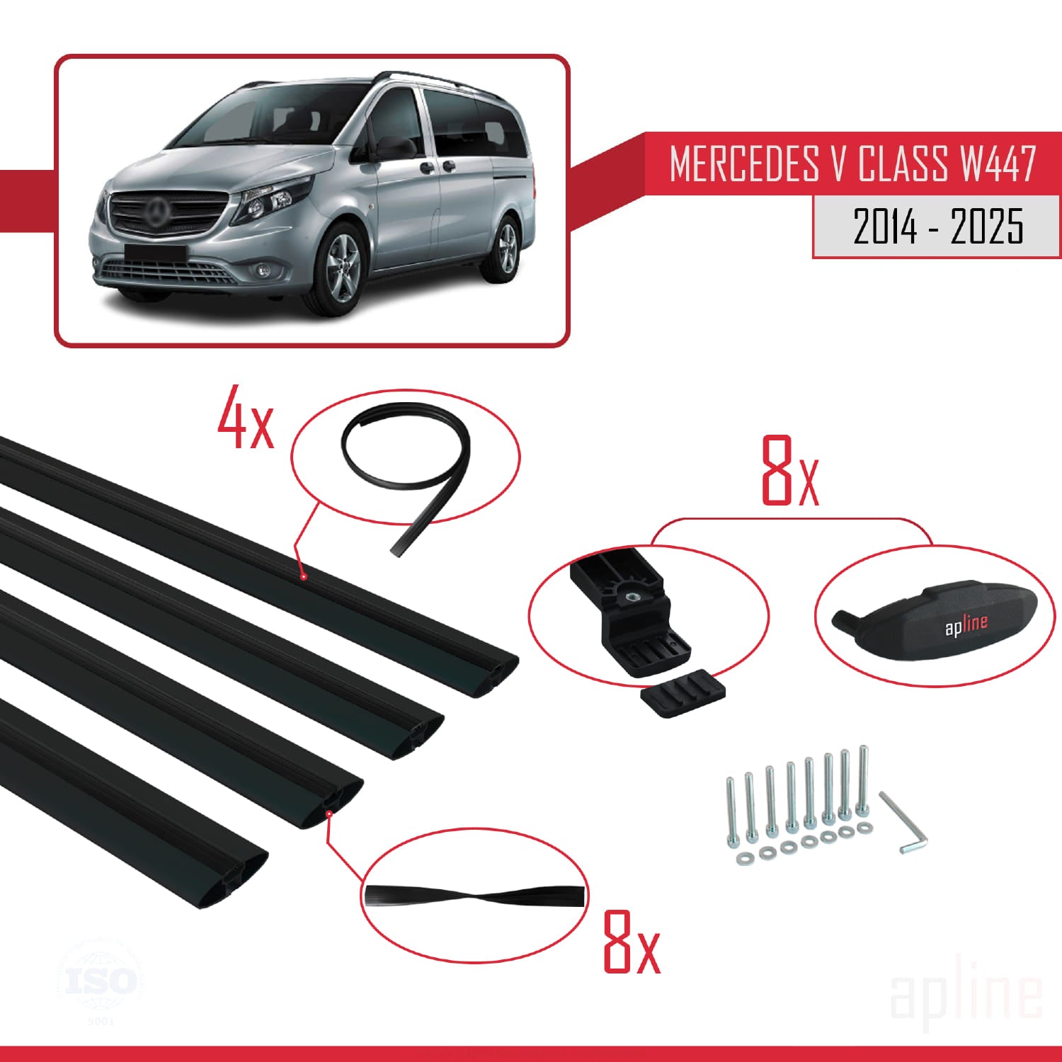 Compatible avec Mercedes Classe V 3 (W447) 2014-2025 BASIC Model Barres de Toit Railing Porte-Bagages de Voiture Noir Aluminium 4 Barres