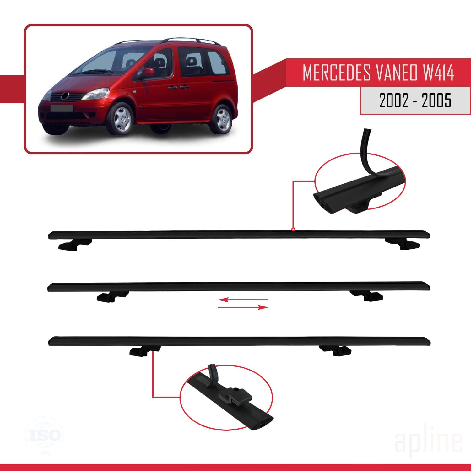Compatible avec Mercedes Vaneo (W414) 2002-2005 BASIC Model Barres de Toit Railing Porte-Bagages de Voiture Noir Aluminium 4 Barres