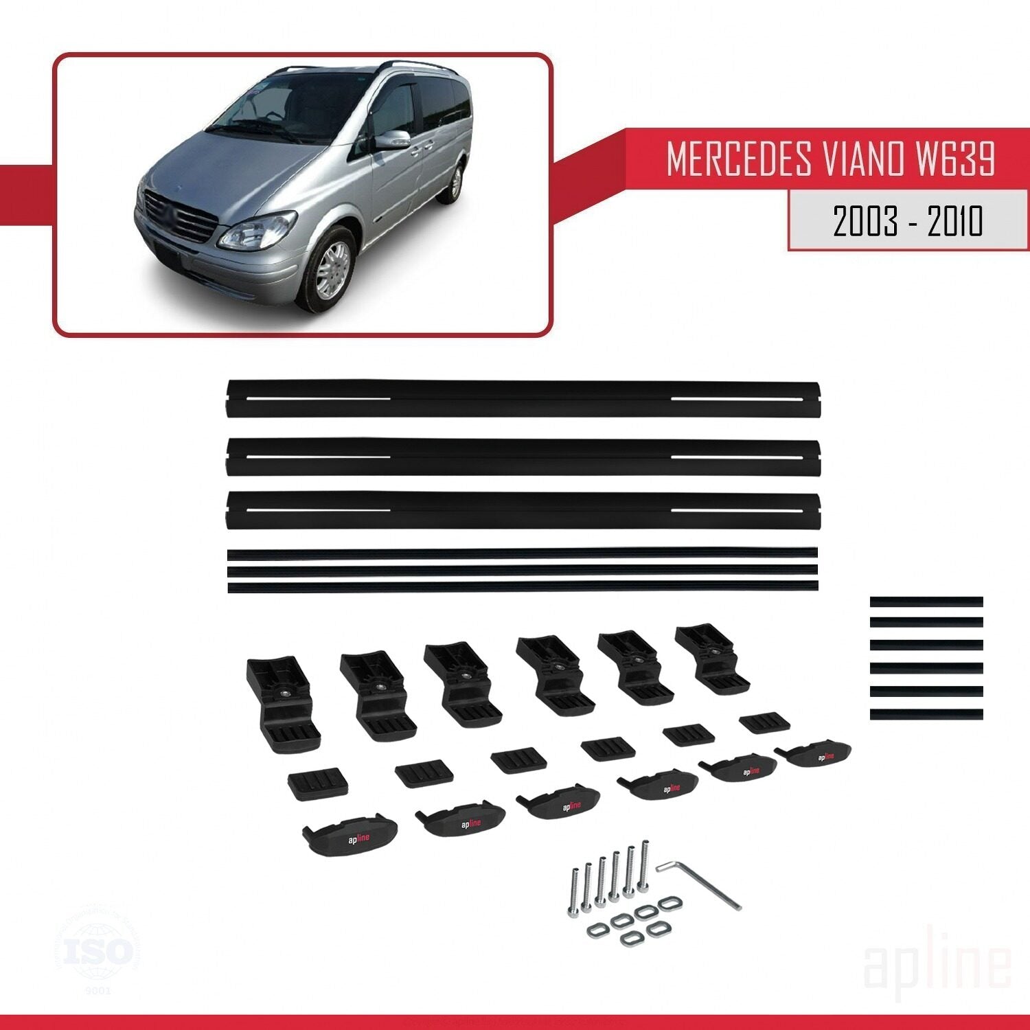 Compatible avec Mercedes Viano 2 (W639) Pre-Facelift 2003-2010 BASIC Model Barres de Toit Railing Porte-Bagages de Voiture Noir Aluminium 3 Barres