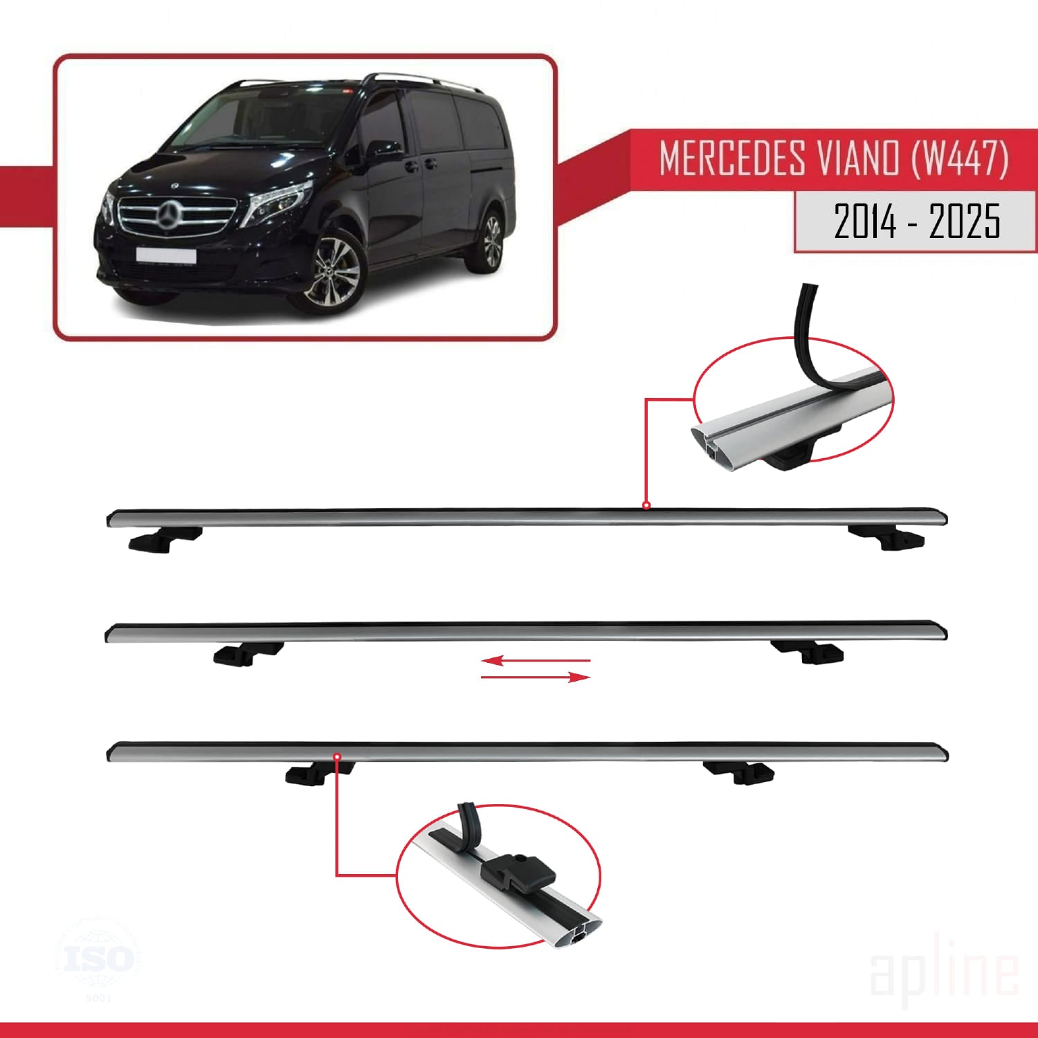Compatible avec Mercedes Viano 3 (W447) 2014-2025 BASIC Model Barres de Toit Railing Porte-Bagages de Voiture Gris Aluminium 3 Barres