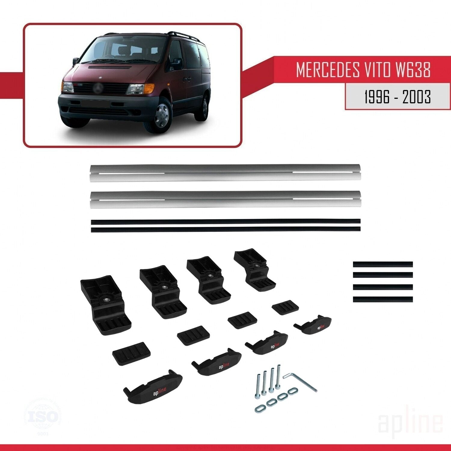 Compatible avec Mercedes Vito (W638) 1996-2003 BASIC Model Barres de Toit Railing Porte-Bagages de Voiture Gris Aluminium 2 Barres