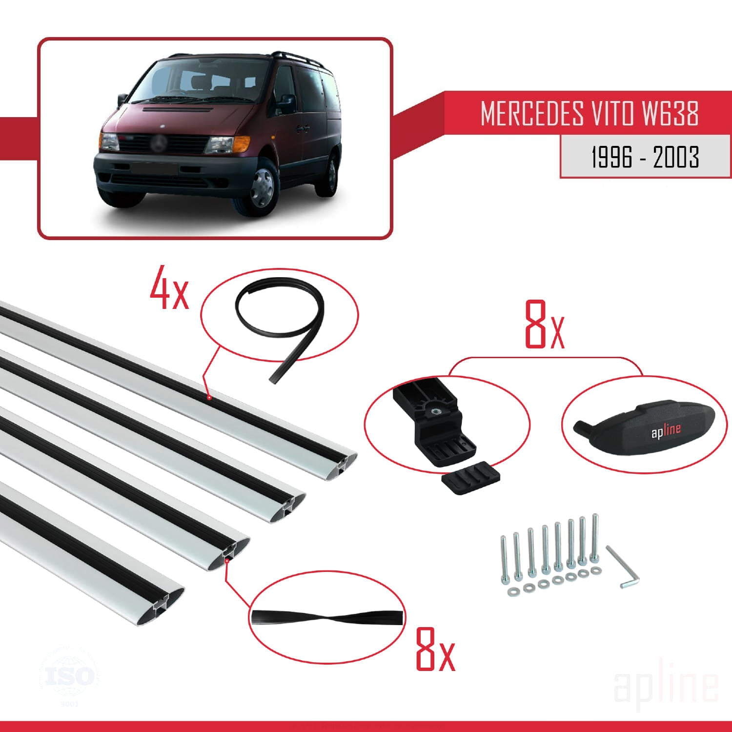 Compatible avec Mercedes Vito (W638) 1996-2003 BASIC Model Barres de Toit Railing Porte-Bagages de Voiture Gris Aluminium 4 Barres