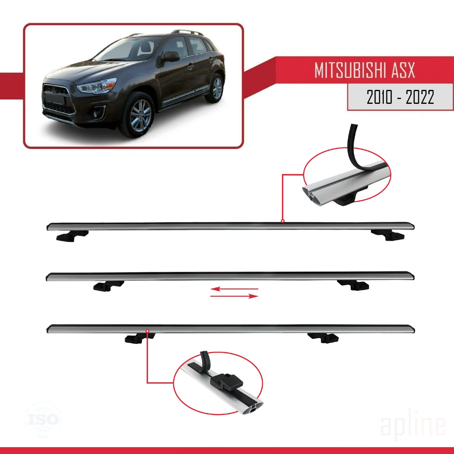 Compatible avec Mitsubishi ASX (GA) 2010-2022 BASIC Model Barres de Toit Railing Porte-Bagages de Voiture Gris Aluminium 3 Barres