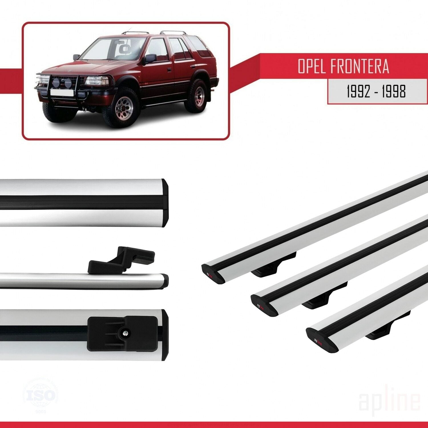Compatible avec Opel Frontera 1992-1998 BASIC Model Barres de Toit Railing Porte-Bagages de Voiture Gris Aluminium 3 Barres