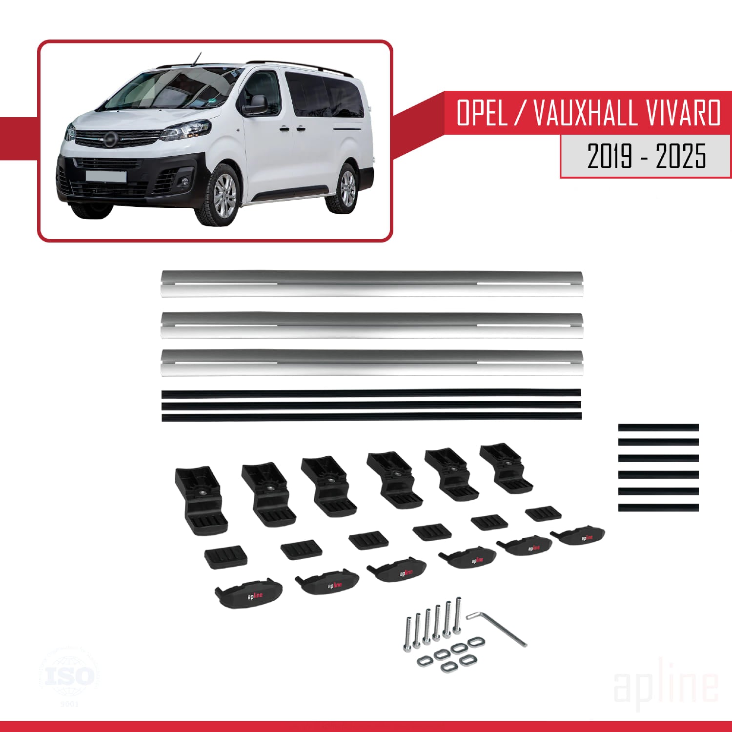 Compatible avec Opel Vivaro C 2019-2025 BASIC Model Barres de Toit Railing Porte-Bagages de Voiture Gris Aluminium 3 Barres