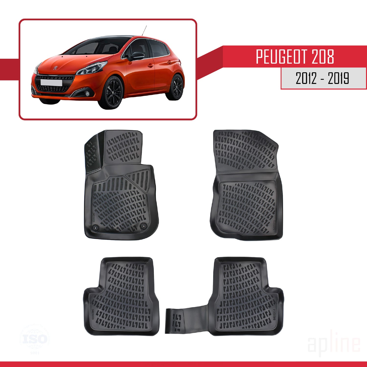 Compatible avec Peugeot 208 (A9) 2012-2019 4D Tapis de Voiture Noir
