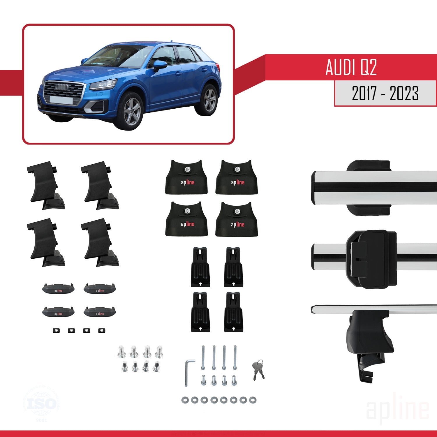 Compatible avec Q2 (GA) 2017-2025 ACE-4 Barres de Toit Railing Porte-Bagages de Voiture Gris Aluminium 2 Barres