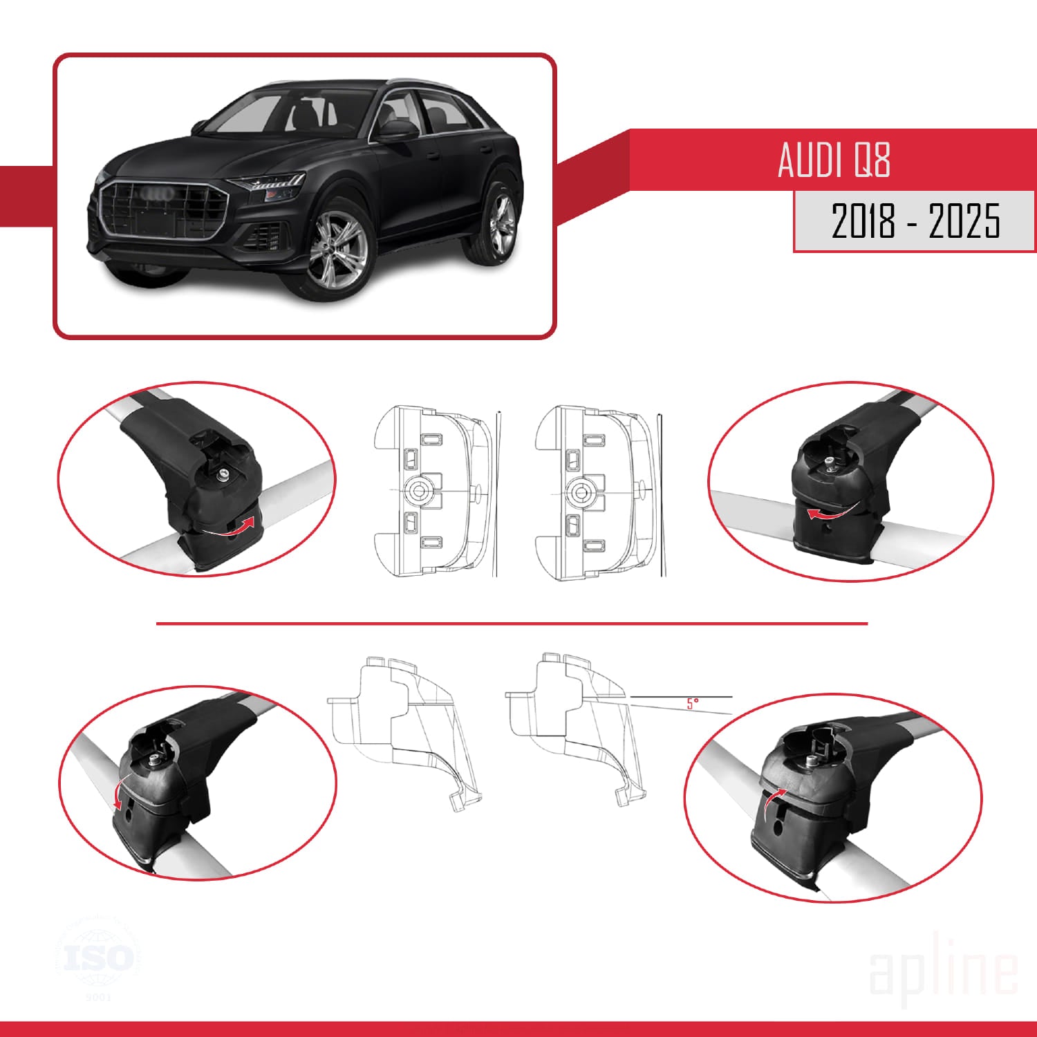 Compatible avec Q8 (F1) 2018-2025 ACE-2 Barres de Toit Railing Porte-Bagages de Voiture Gris Aluminium 2 Barres
