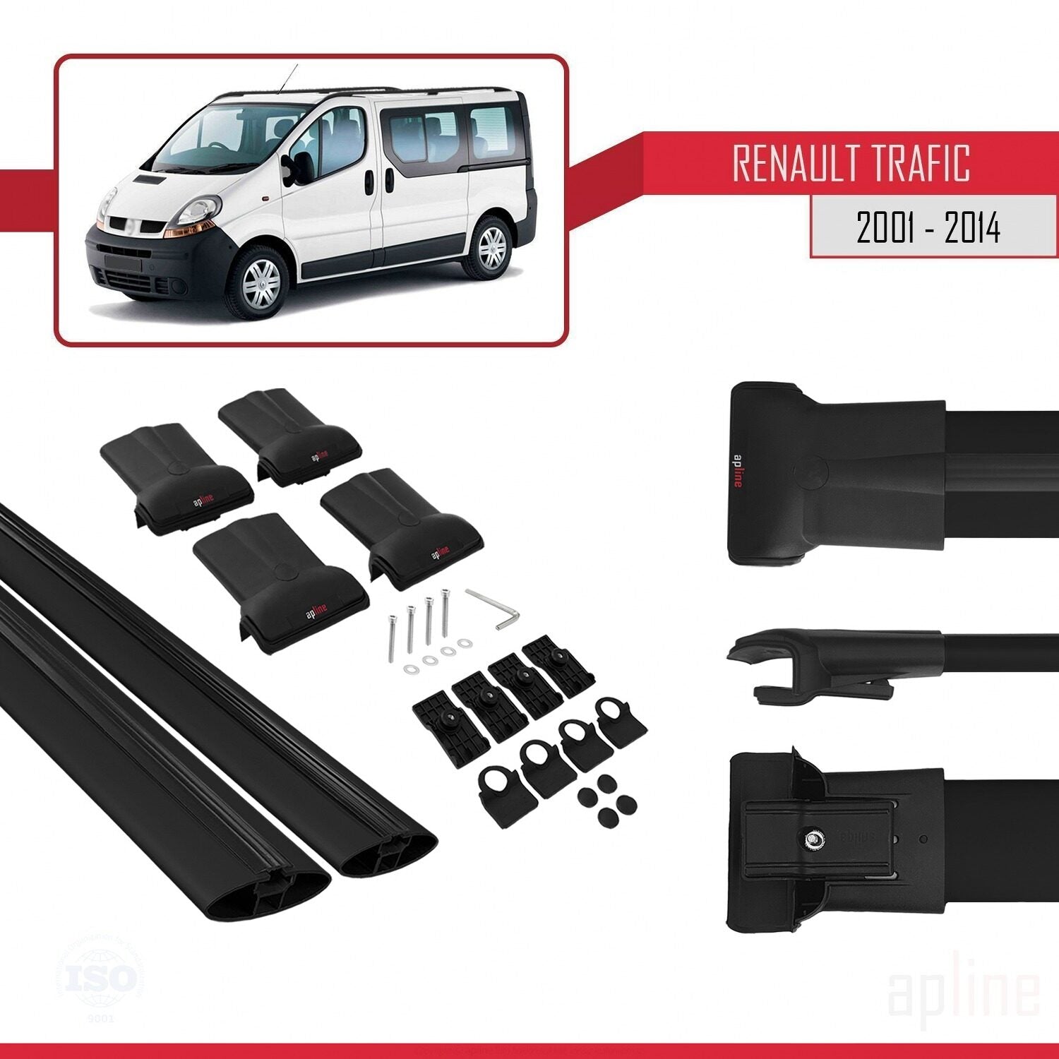 Compatible avec Renault Trafic 2 (X83) 2001-2014 FLY Model Barres de Toit Railing Porte-Bagages de Voiture Noir Aluminium 2 Barres
