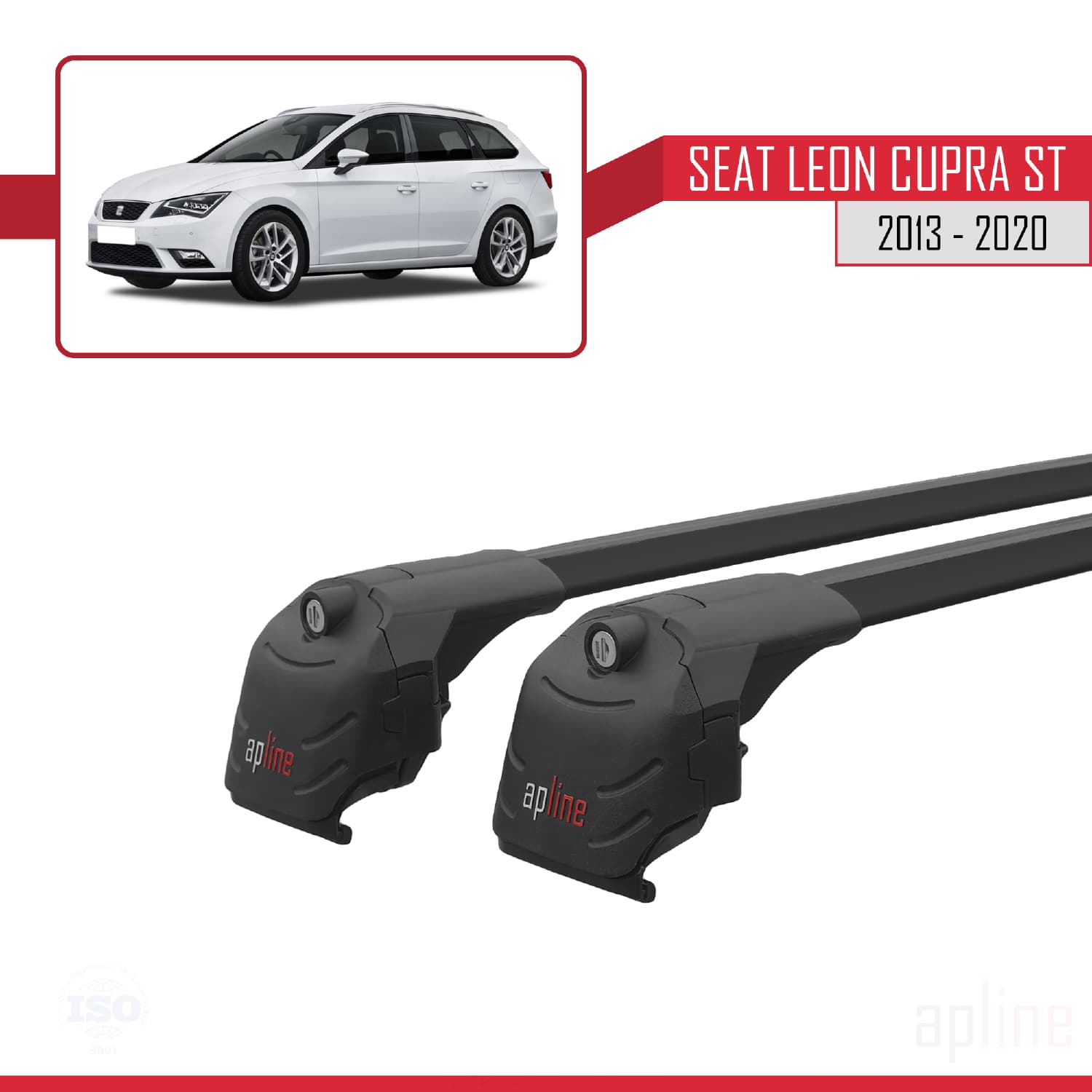 Compatible avec Seat Leon 3 (5F) Cupra ST 2013-2020 ACE-2 Barres de Toit Railing Porte-Bagages de Voiture Noir Aluminium 2 Barres