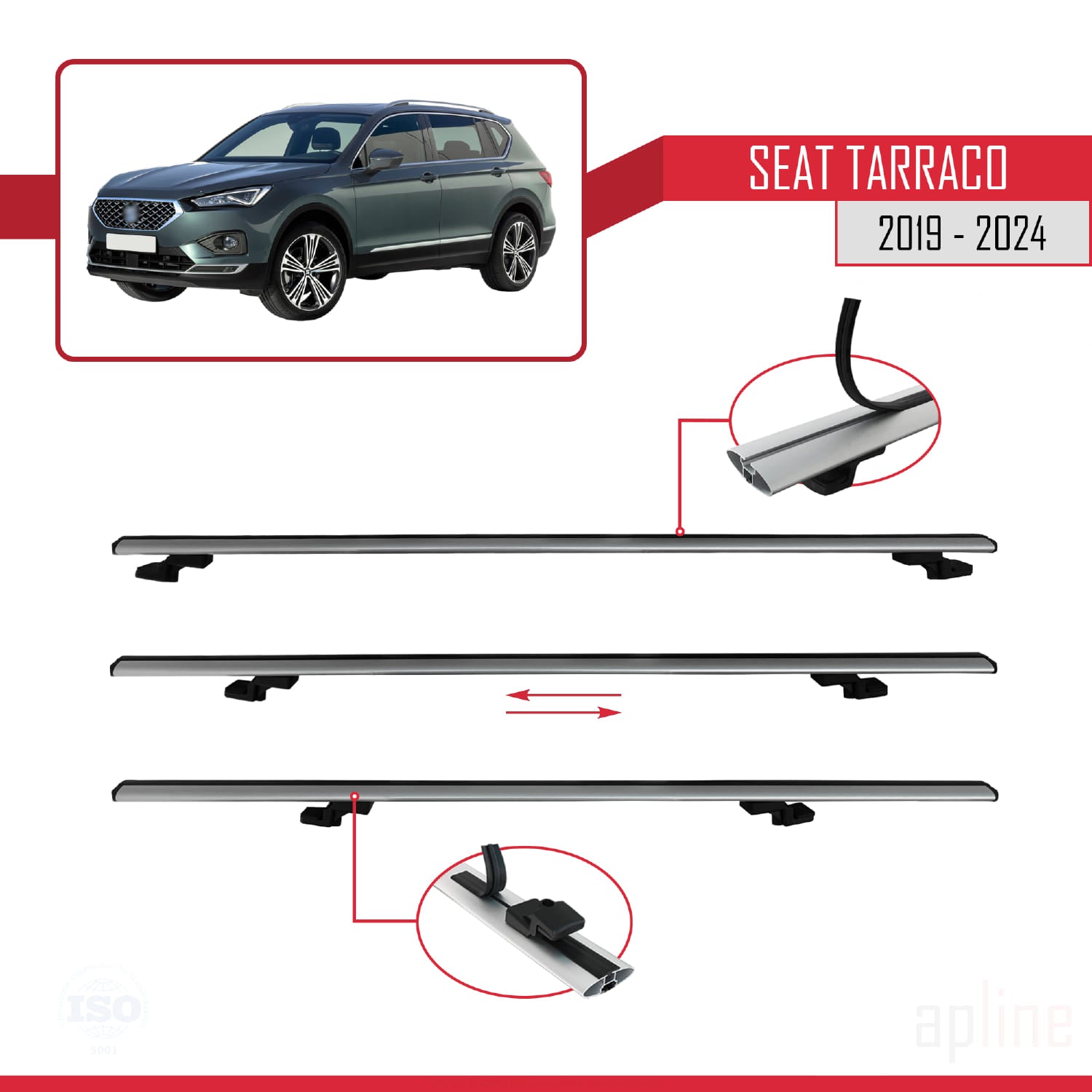 Compatible avec Seat Tarraco 2019-2024 BASIC Model Barres de Toit Railing Porte-Bagages de Voiture Gris Aluminium 3 Barres