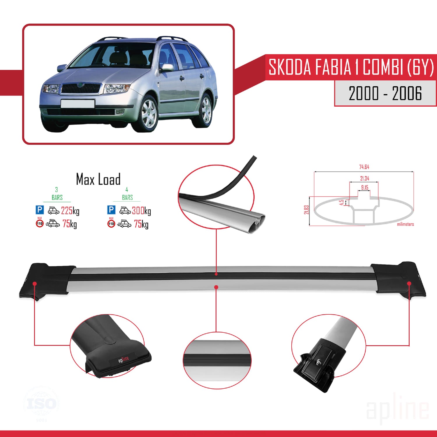 Compatible avec Skoda Fabia (6Y) Break 2000-2006 FLY Model Barres de Toit Railing Porte-Bagages de Voiture Gris Aluminium 3 Barres