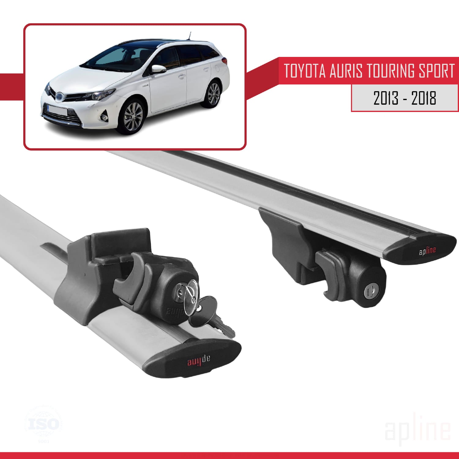 Compatible avec Toyota Auris 2 (E180) Touring Sports 2013-2018 HOOK Model Barres de Toit Railing Porte-Bagages de Voiture Gris Aluminium 2 Barres