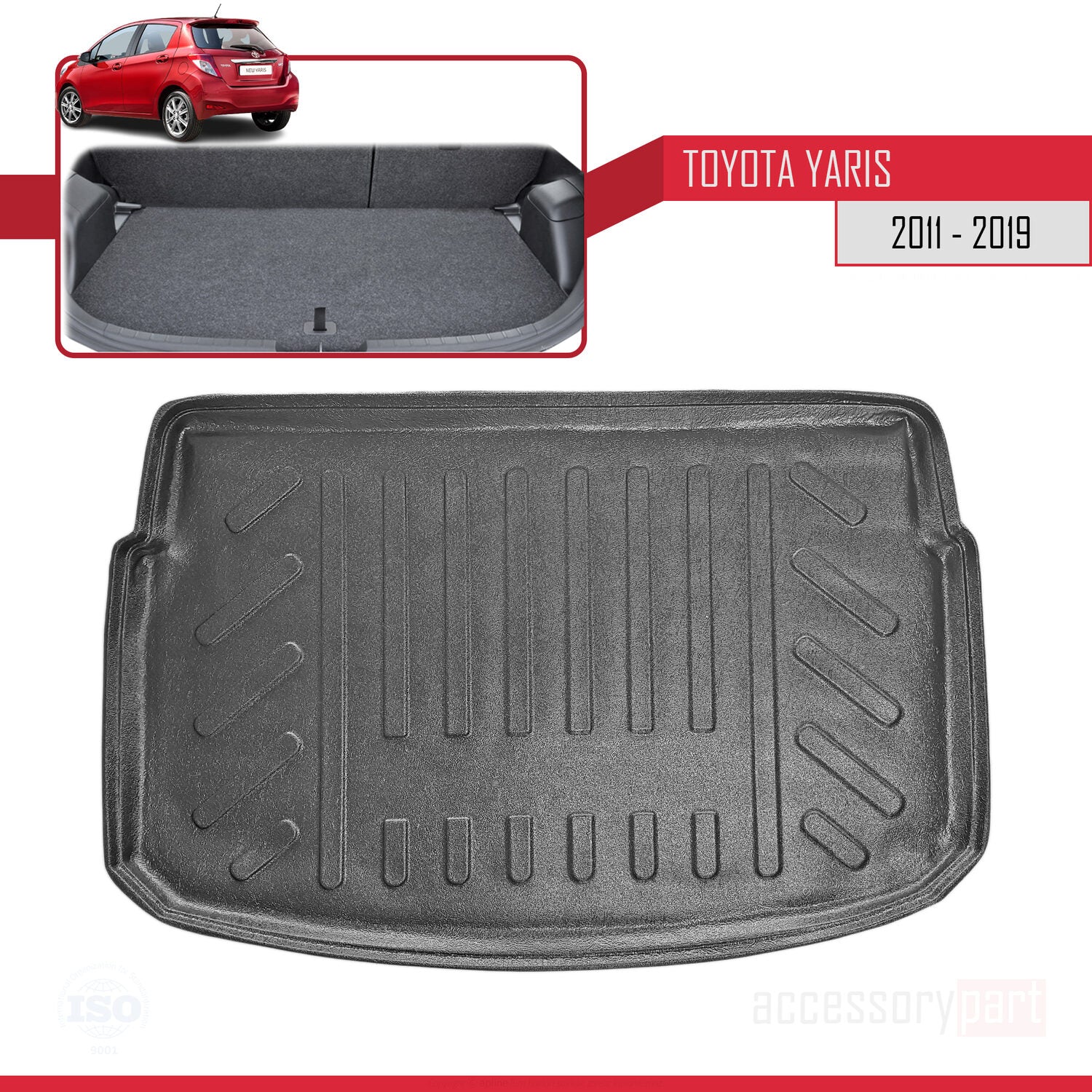 Compatible avec Toyota Yaris 3 (XP130) 2011-2019 Flexible Tapis de Coffre Plancher de Chargement Noir