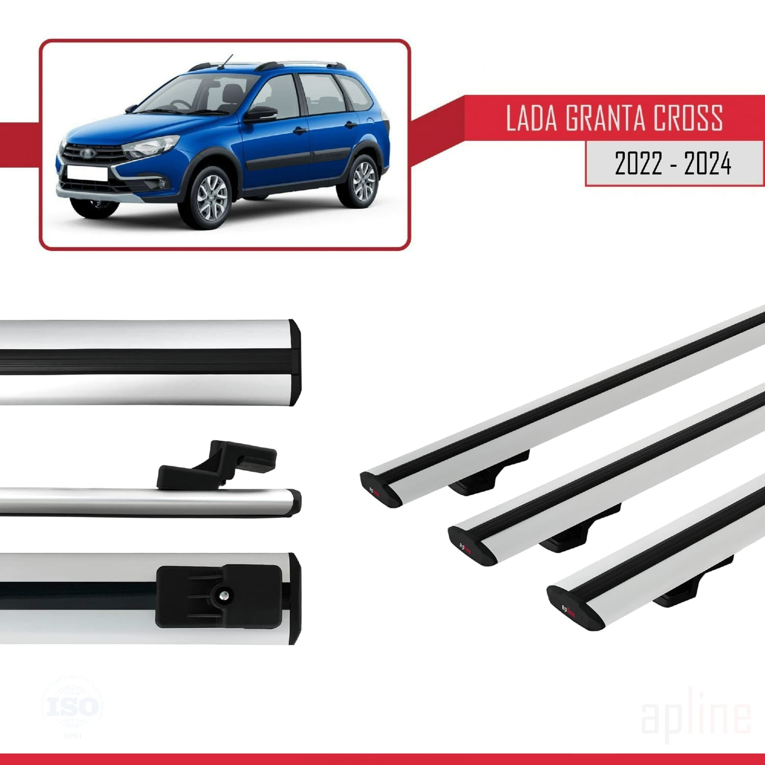 Compatible avec Lada Granta Cross 2022-2024 BASIC Model Barres de Toit Railing Porte-Bagages de Voiture Gris Aluminium 3 Barres